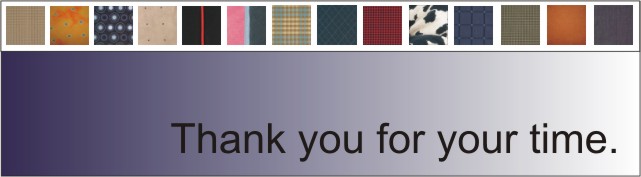 Thank you for taking the time to fill in this questionaire. All of the fabric swatches pictured have been used in countries around the world on Child Safety seats used in cars. The aim of this questionaire is to try to understand peoples views of styles from different countries. The information will be used to complete a survey for an MBA degree course and is not intended for commercial use. Please answer the following questions, there are no right or wrong answers, it is purely your personal choice Thank you for your time!
